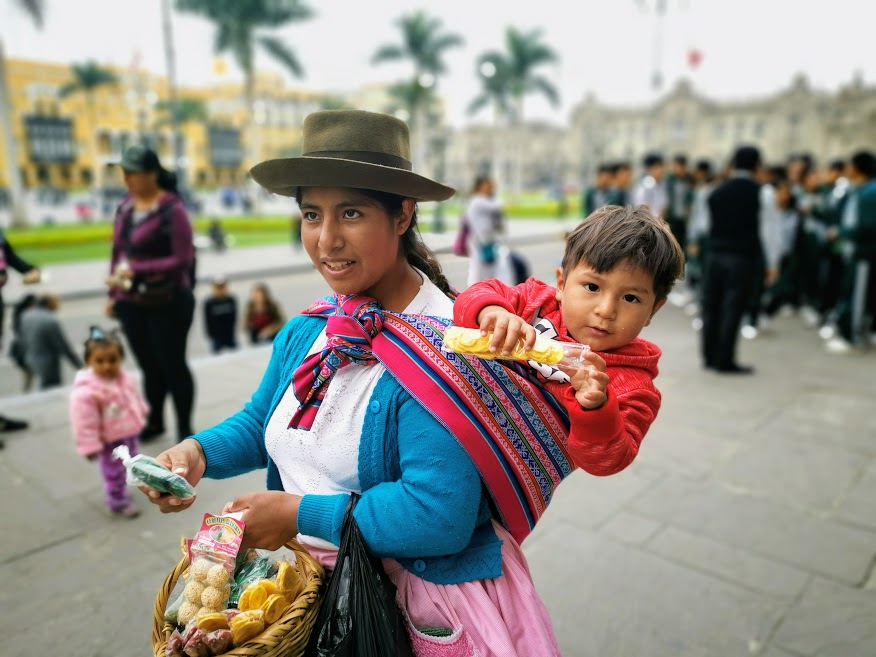 Peruanii sunt mici de înălțime ,se îmbracă colorat și își poarta copii în spate .La fel ca si in Asia e o explozie de culori si texturi in hainele lor și ma întreb încă o data de ce noi ,europenii suntem îmbrăcați in toate nuanțele de gri si bej terne si triste .