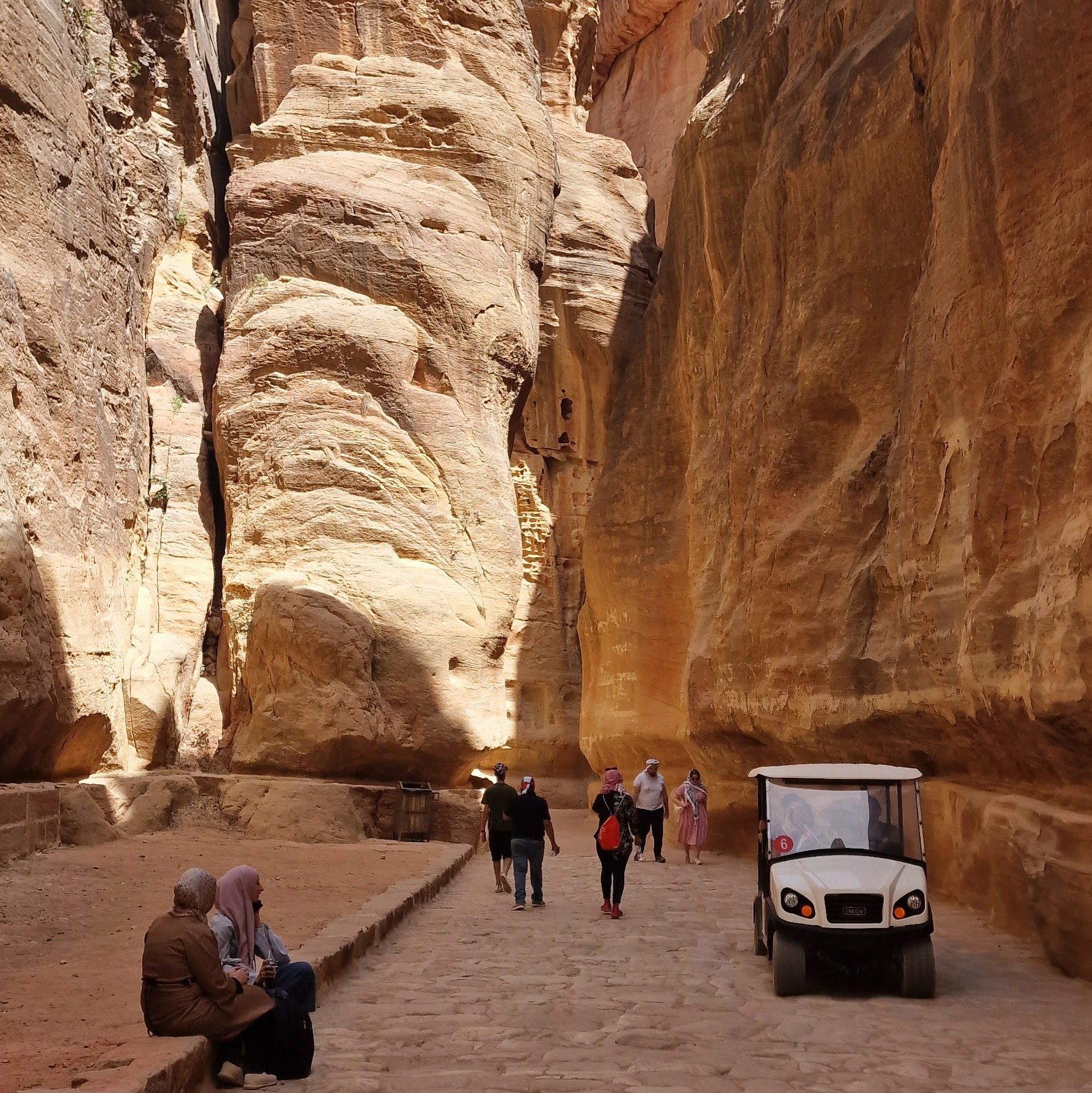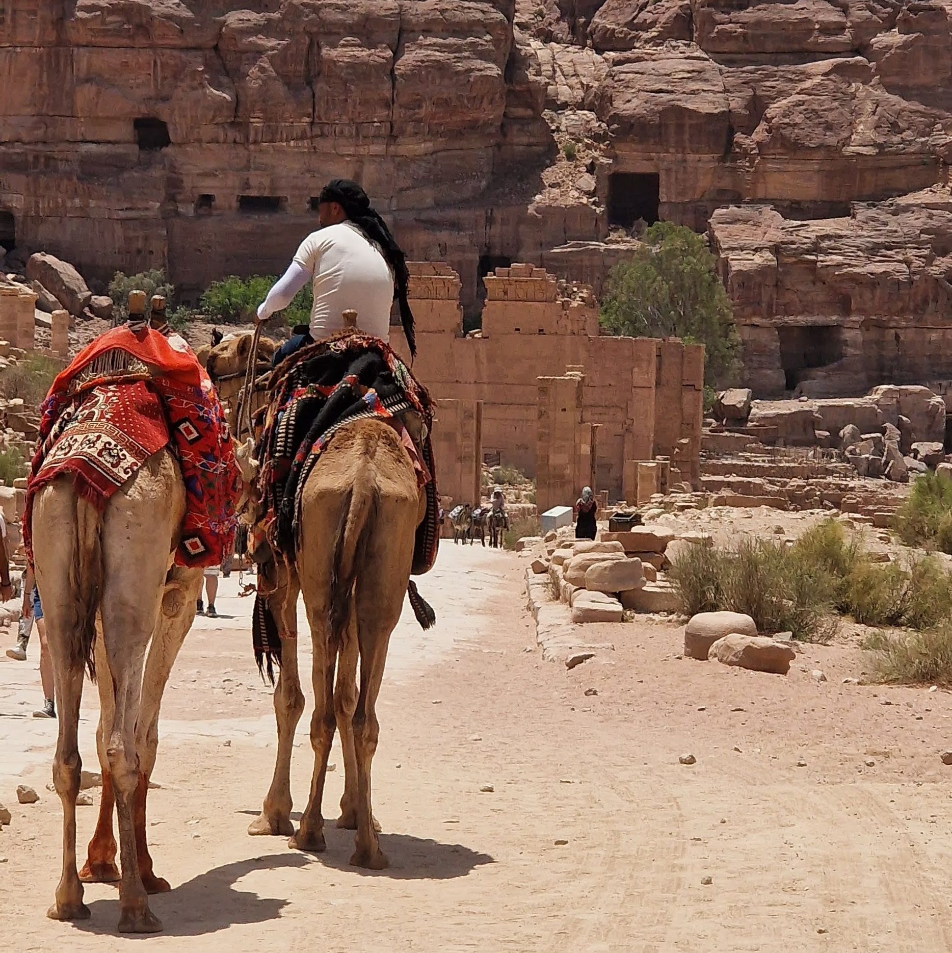 In fata Trezoreriei, locul e relativ mic, comparat cu grandoarea locului. Poze, turiști, cămile, cafenele, tarabe cu de toate, forfota, gălăgie.