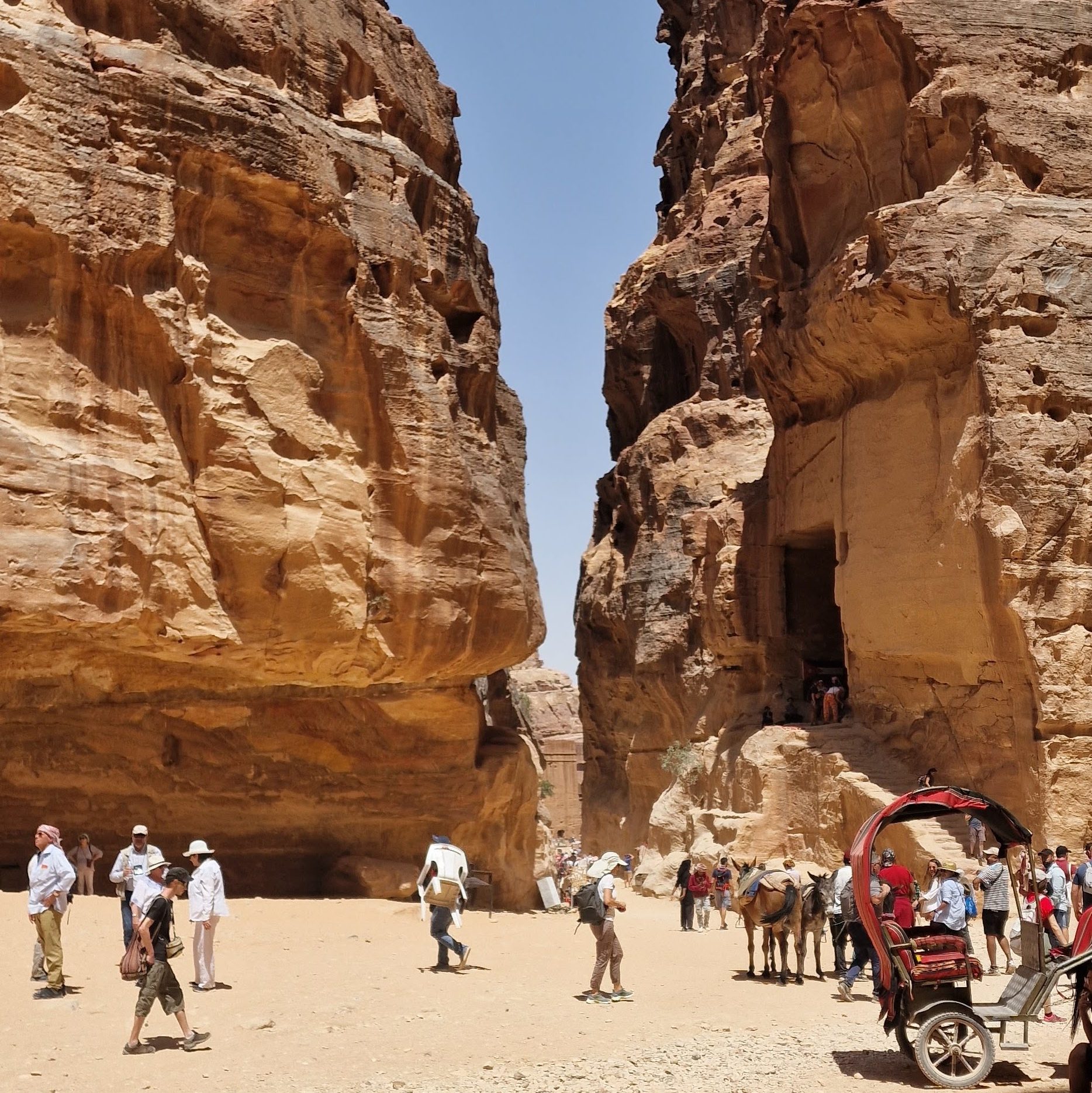 Intram intr-o zona îngusta, stânga, dreapta tarabe. Inima mea a rămas in Siq.